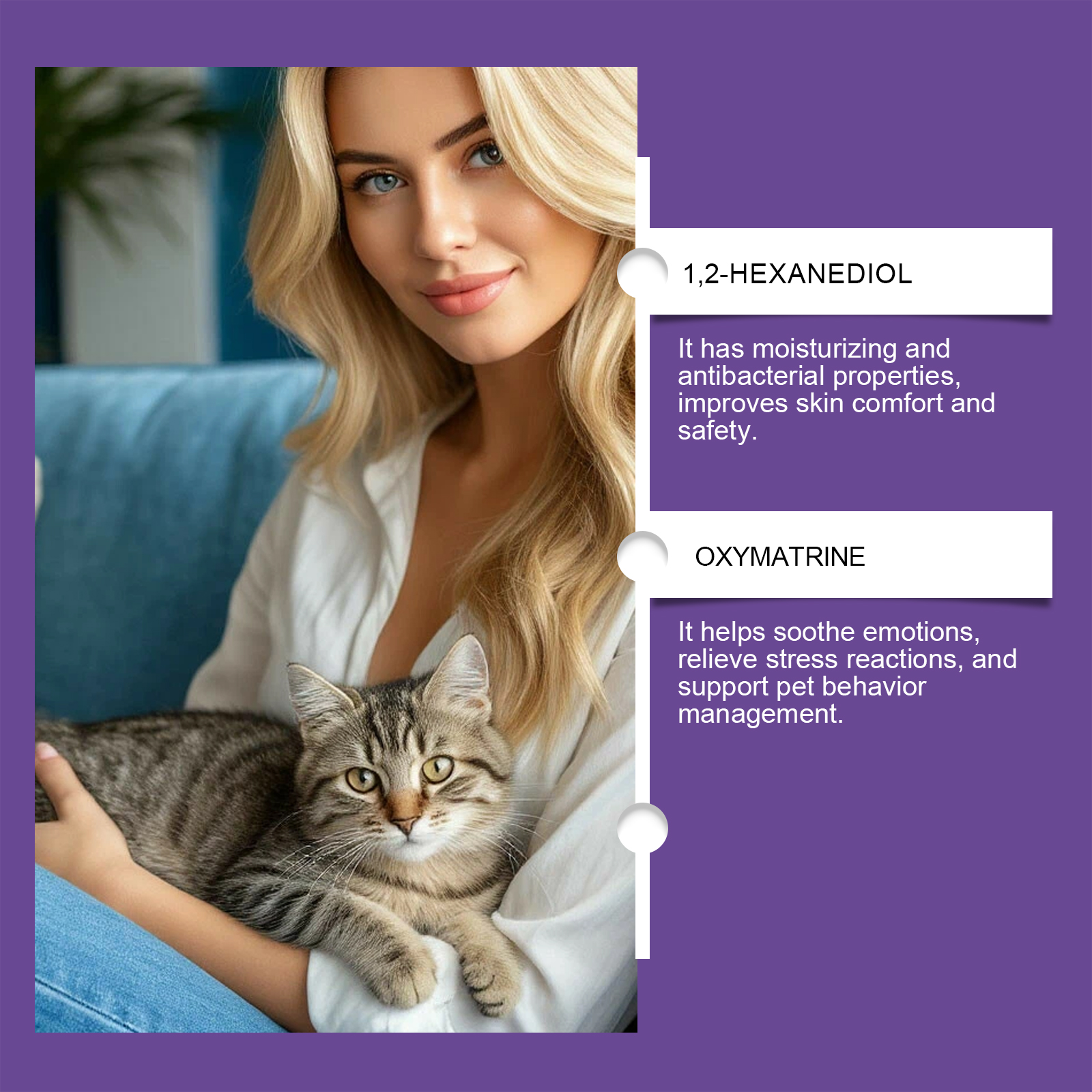Our cat care spray is carefully formulated with deionized water, 1,2-hexanediol, and matrine. It is specially designed to help adjust pets' inappropriate behavior. The method of use is extremely convenient: shake the bottle well for 10 seconds before use, spray the target area 3-4 times a day. Combine positive rewards to strengthen memory. Watch the reaction and adjust the dosage dynamically. It can also soothe emotions, relieve stress reactions, and support pet behavior management.